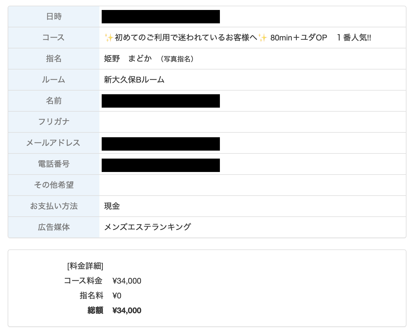 | 80分 【イエスOP不可】 | 14,000円 |